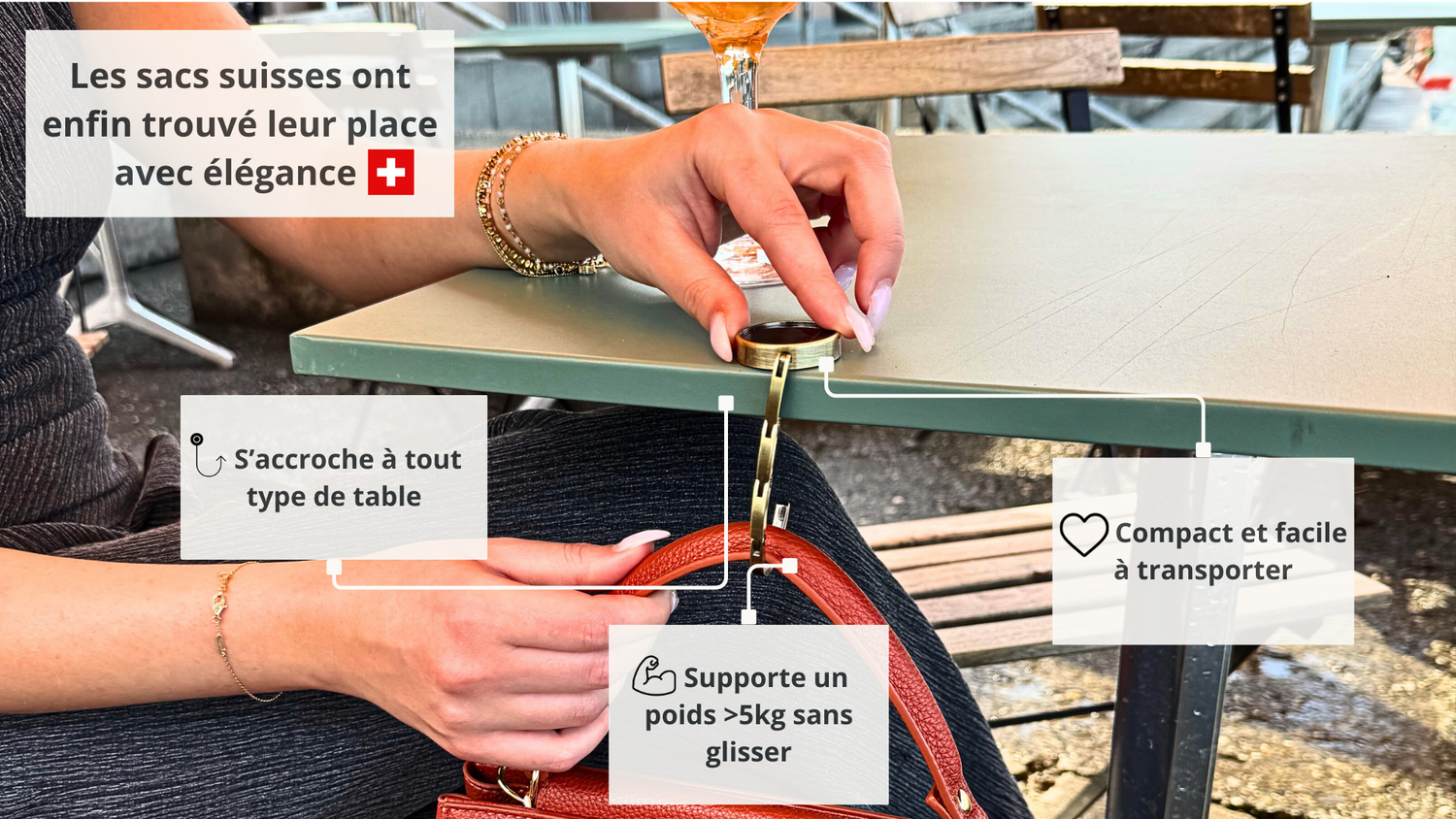 L’Élégance Clip™ adhère à la plupart des tables plates.